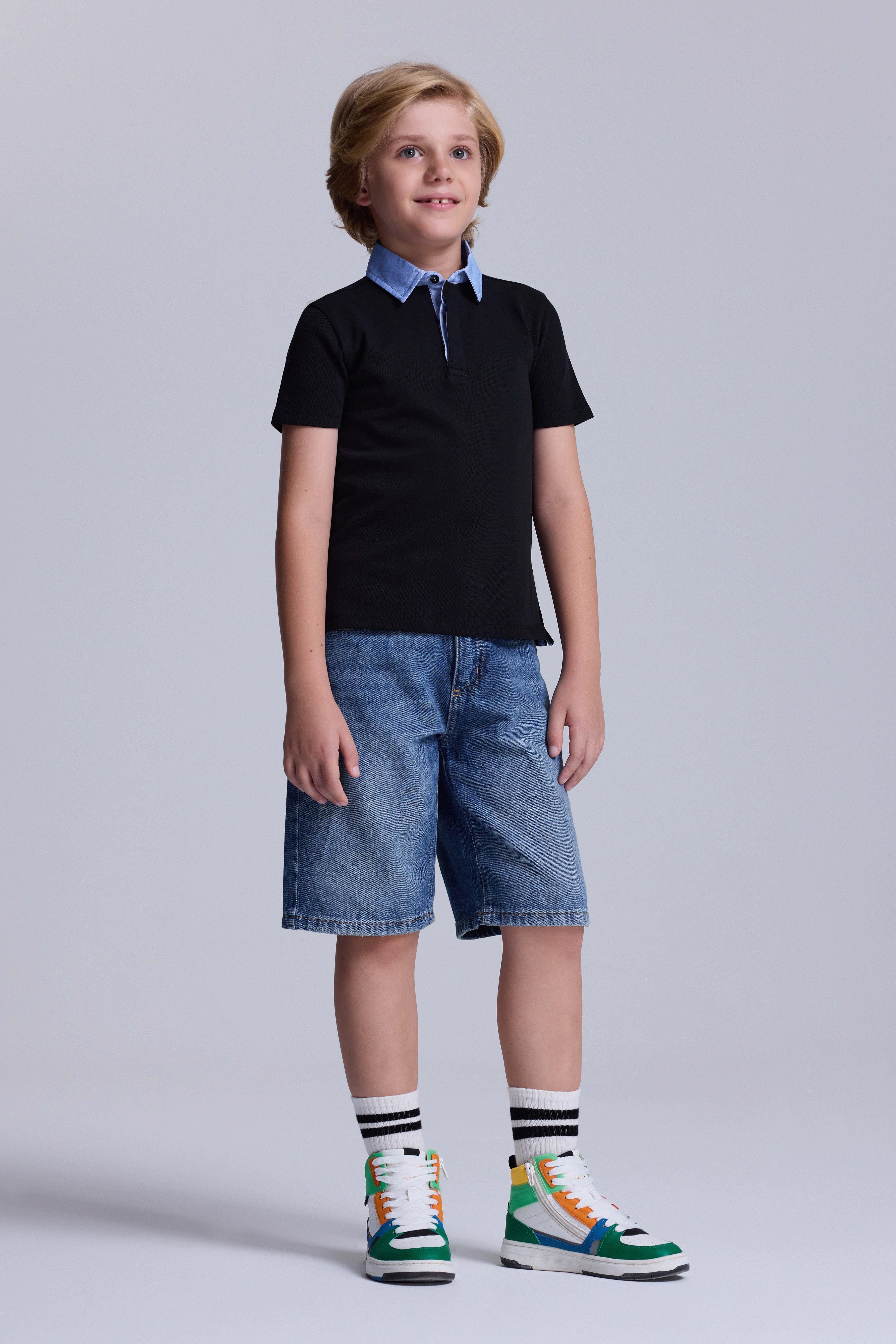 (Kids Boy) Dokuma Yakalı Polo T-shirt - SİYAH